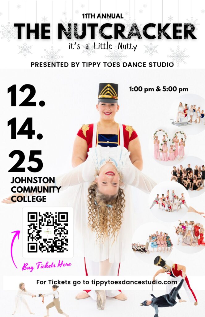 Back for their 11th year, Tippy Toes Dance Studio will preform “It’s a Little Nutty” at Johnston Community College. This event has become a honored tradition for many JoCo families, and a chance for anyone to enjoy a little extra joy this season. For tickets of questions please see their website at http://tippytoesdancestudio.com/